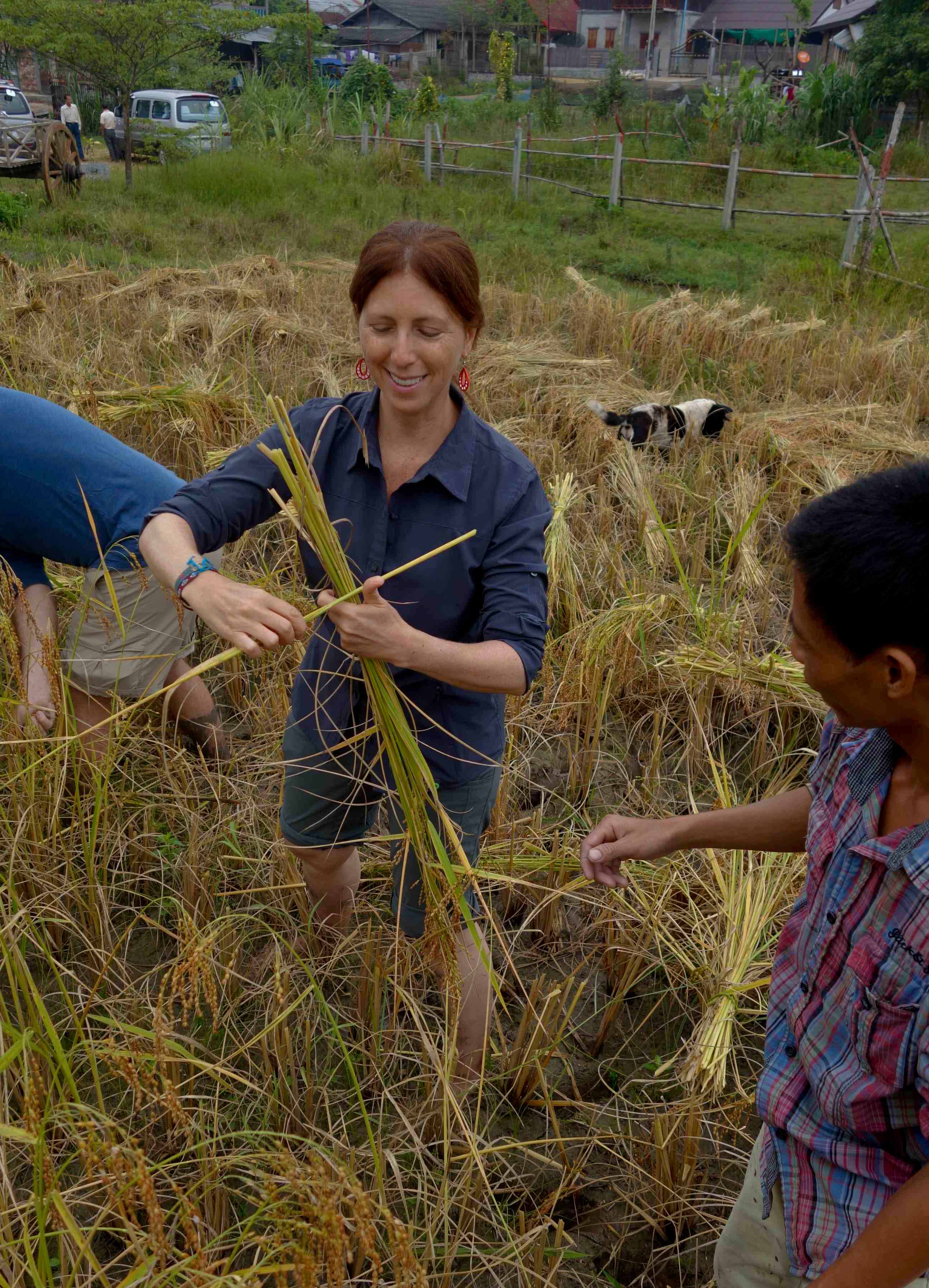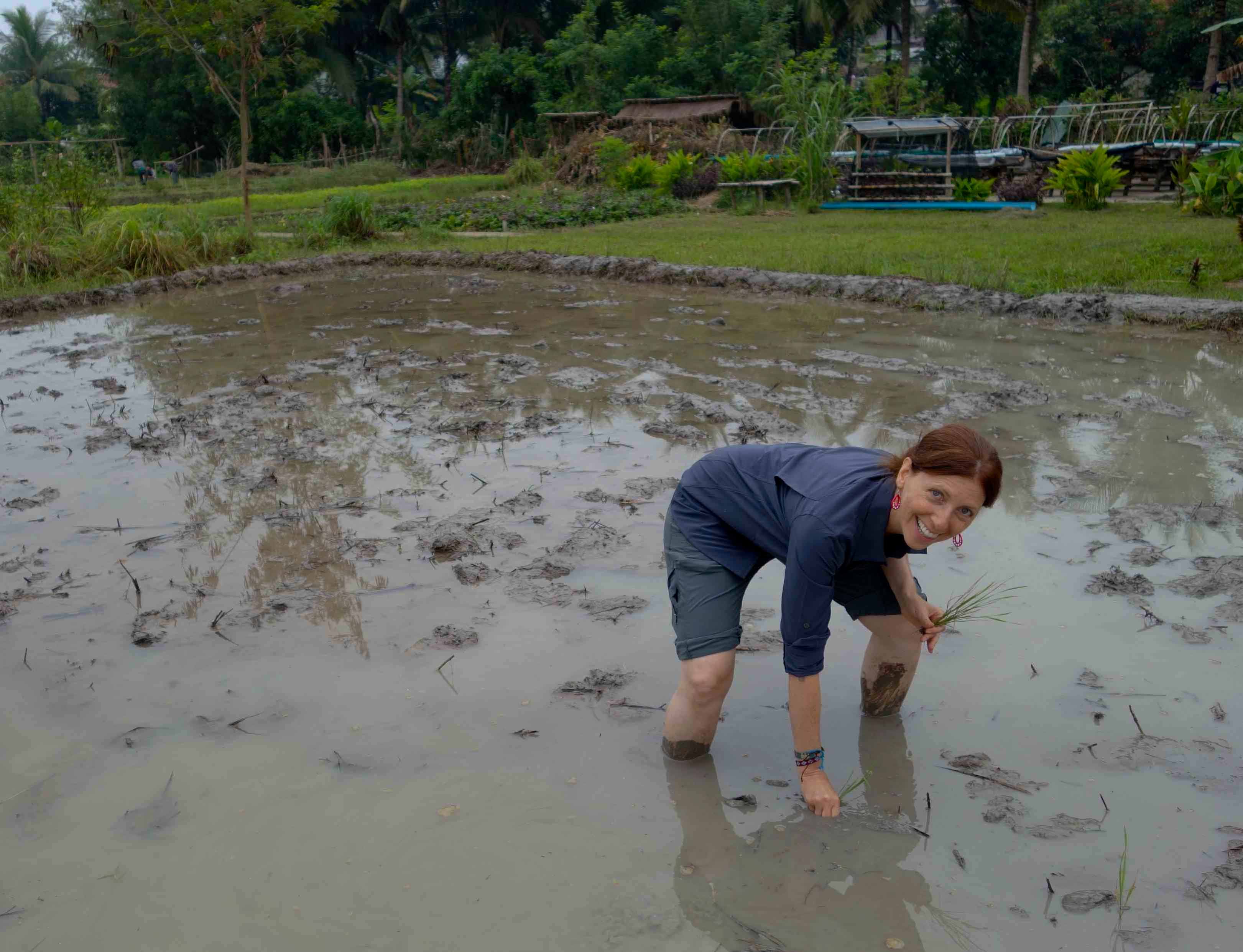 Many years ago, I sat entranced while Vietnamese Buddhist monk, Tich Nhat Hanh, explained the concept of awareness with each bite of food we take. His metaphor was with rice: from seed to table. Tich Nhat Hanh comes from Vietnam, where rice is a staple food of that country and the region as a whole. Each grain of rice takes a great amount of effort to reach harvest time. At the time, I understood the concept intellectually, but the other day in Luang Prabang, Laos, I was lucky to experience it viscerally at a living land farm.