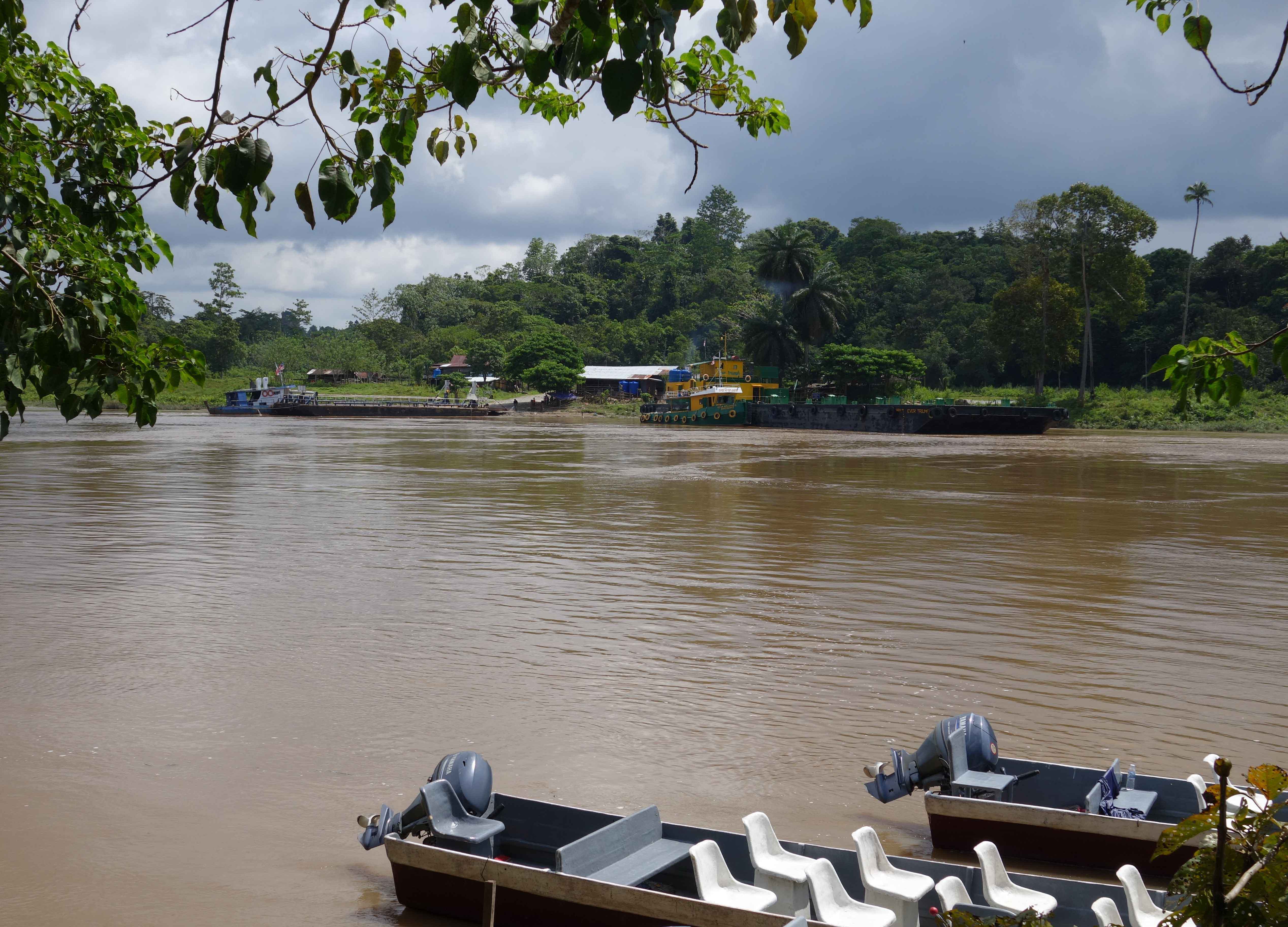 Across the way from my B&B, barges connect the palm oil plantations to distribution.